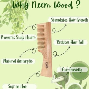 Legise Natural Neem Wood Comb | Anti-Dandruff & Hair Growth | Eco-Friendly Anti-Frizz Hair Care Comb