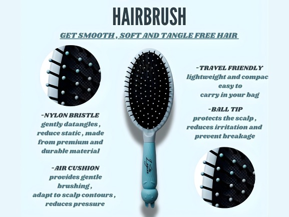 • Ball-tip bristles minimize hair breakage